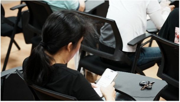 在活动过程中,观众不仅拿出手机记录,还主动下载DeepSeek以跟随主讲人同步学习与AI的交流办法。在活动后的答疑中,听讲的社区工作人员就AI如何助力社区工作主动提问并寻求帮助。董思唯基于专业知识介绍AI模型在工作中的优势,针对实际应用难题给出具体操作办法,并提出灵活结合运用各类大模型的建议。